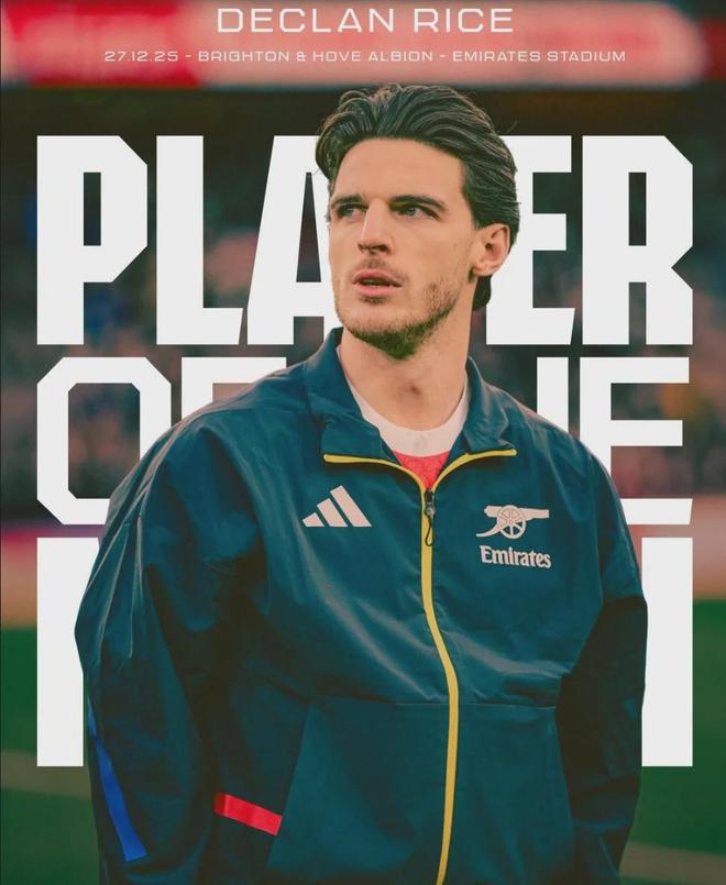 赖斯被阿森纳官方票选为了本场比赛最佳球员。