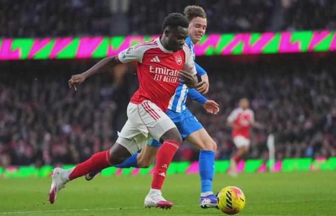 凭借这个助攻,萨卡目前在英超已经直接参与104球,超过了传奇皮雷。
